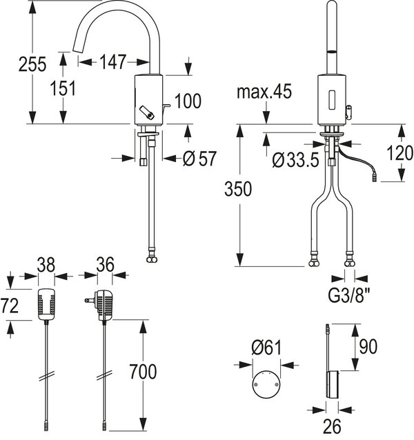 loopino Waschtischarmatur G11, chrom, mit IR-Sensor, Batterie, ohne Ablg., mit Mischung, G3/8 151.000.11