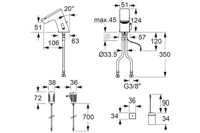 ultra Waschtischarmatur GS10, chrom, mit IR-Sensor, Batterie, ohne Ablg., mit Mischung, PUBLIC, G3/8 161.000.11