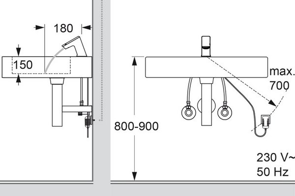 Wassernachlaufzeit:        1 s voreingestellt (mit Touch 0 – 10 s einstellbar)