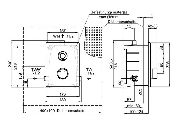 • Water path: dezincification resistant forged brass, as a high-quality thermostatic mixer, thermostat handle: chromed brass