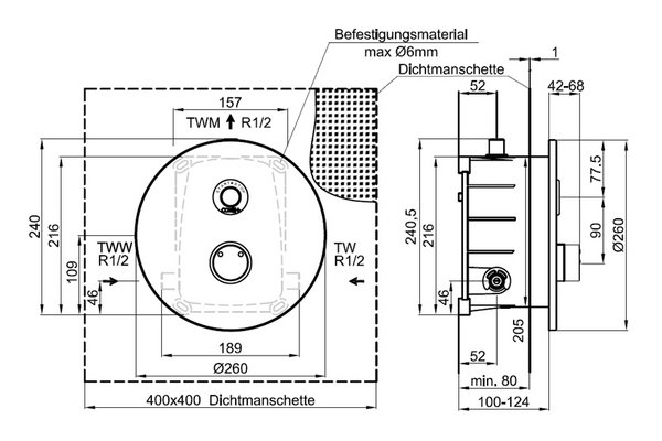• Water path: dezincification resistant forged brass, as a high-quality thermostatic mixer, thermostat handle: chromed brass